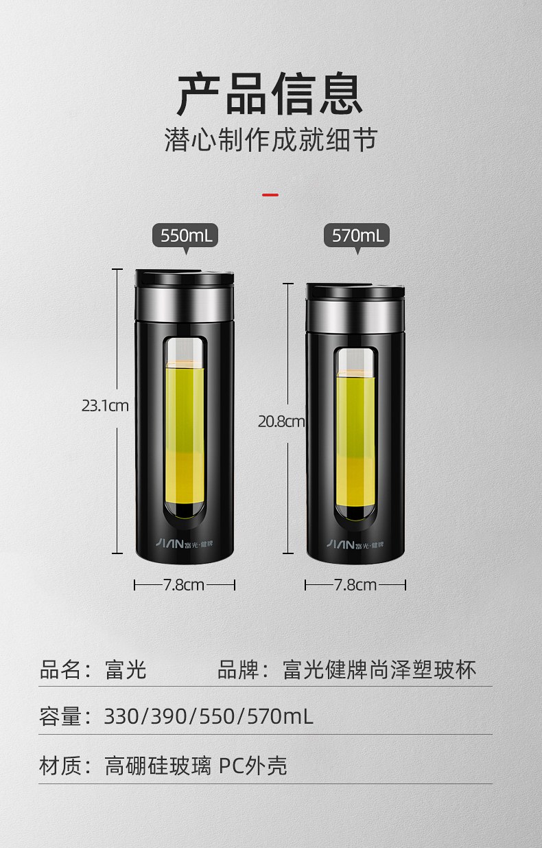 名稱:富光健牌尚澤塑玻杯550ml